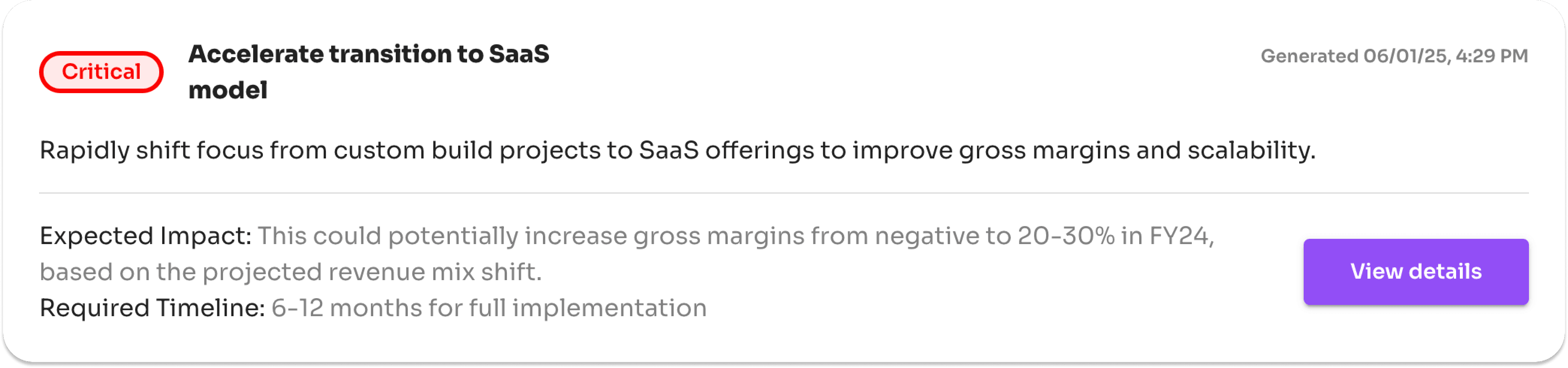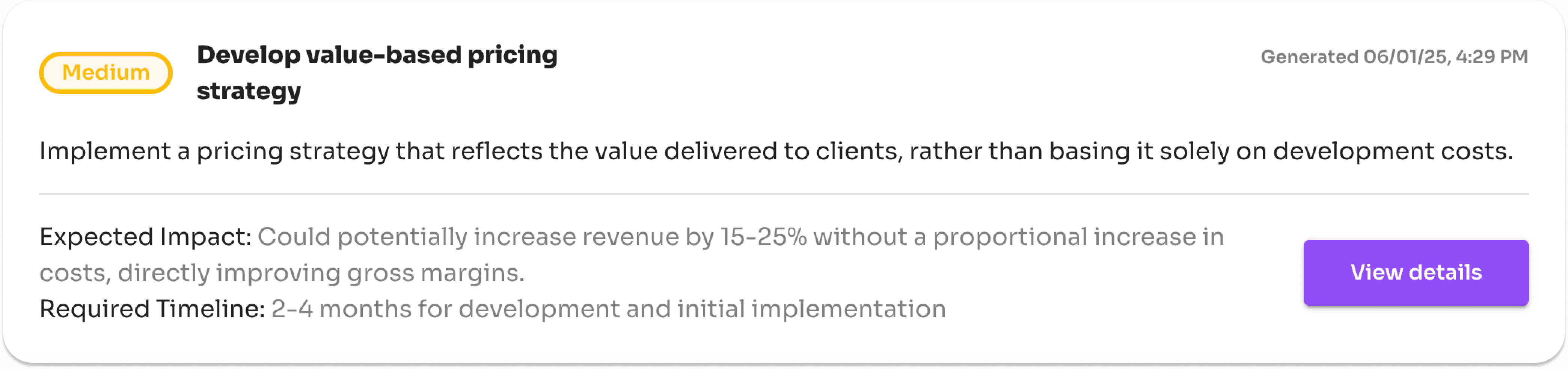 Recommendations and priority roadmaps are generated instantly, in real time.